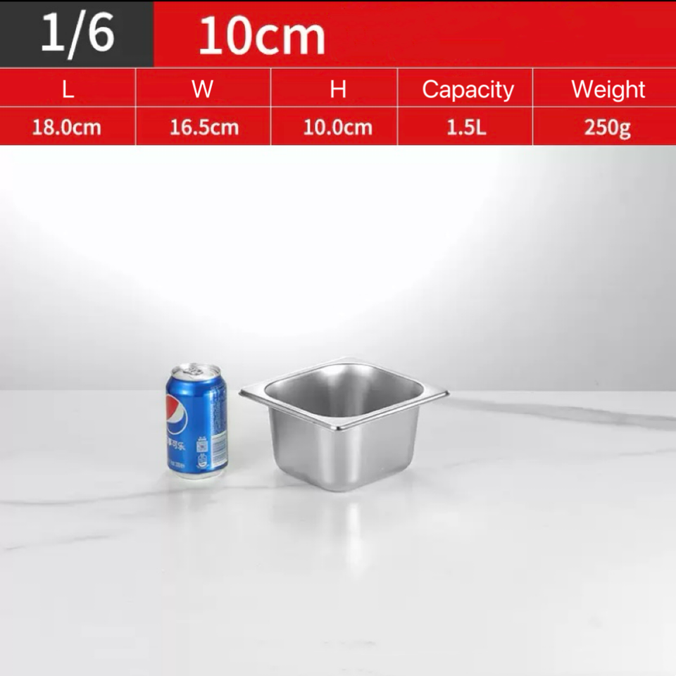 ชุดกระทะสแตนเลสพร้อมฝาปิดสำหรับเก็บอาหาร1/6บุฟเฟ่ต์ขนาด10ซม. ภาชนะใส่จานเท่านั้น | binlu