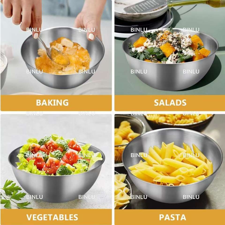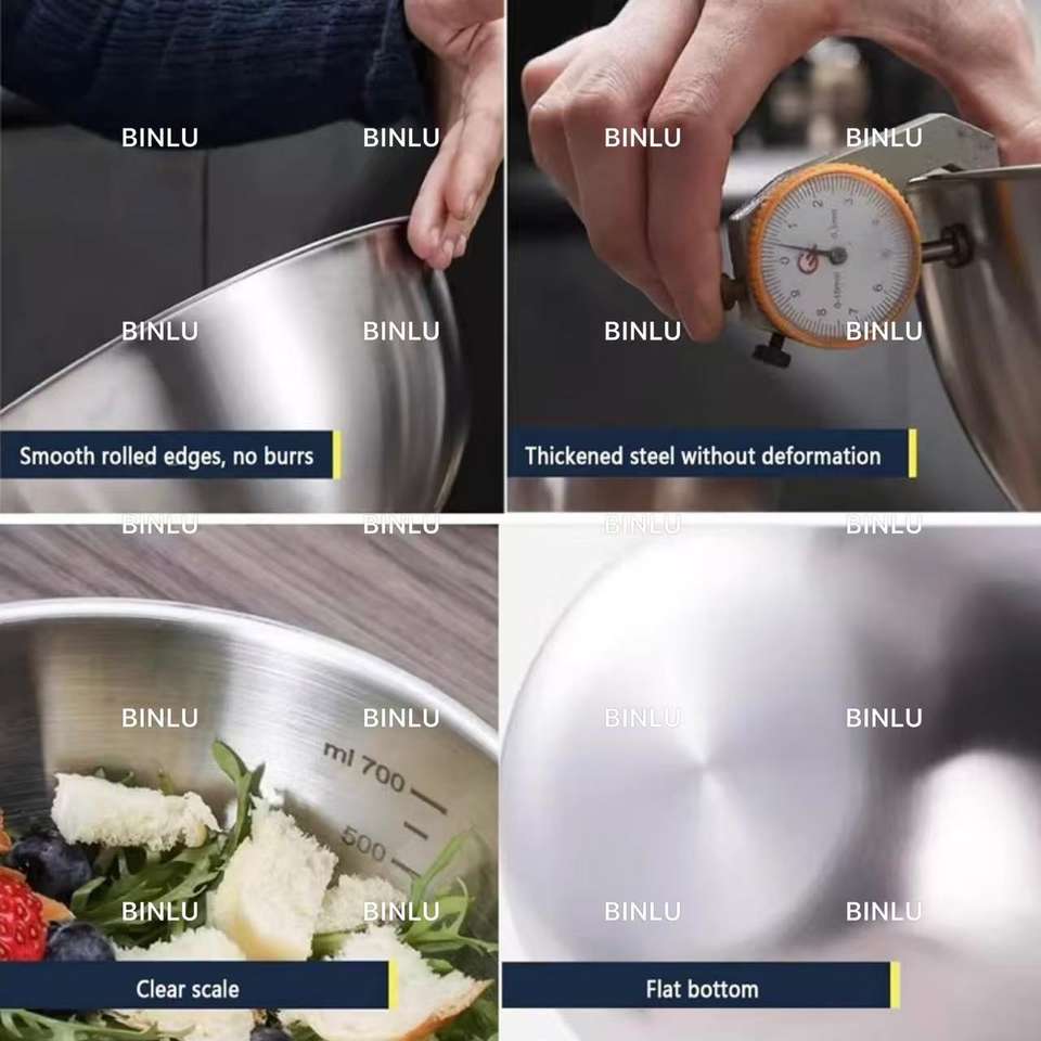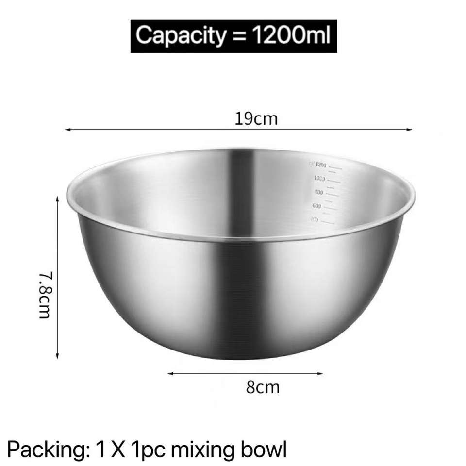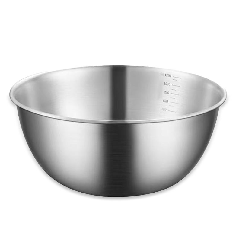 สแตนเลสสตีลหนาราคาไม่แพง #304ชามผสมความจุ1200มล. ชามสลัดที่เก็บอาหารการวัดการอบ | binlu
