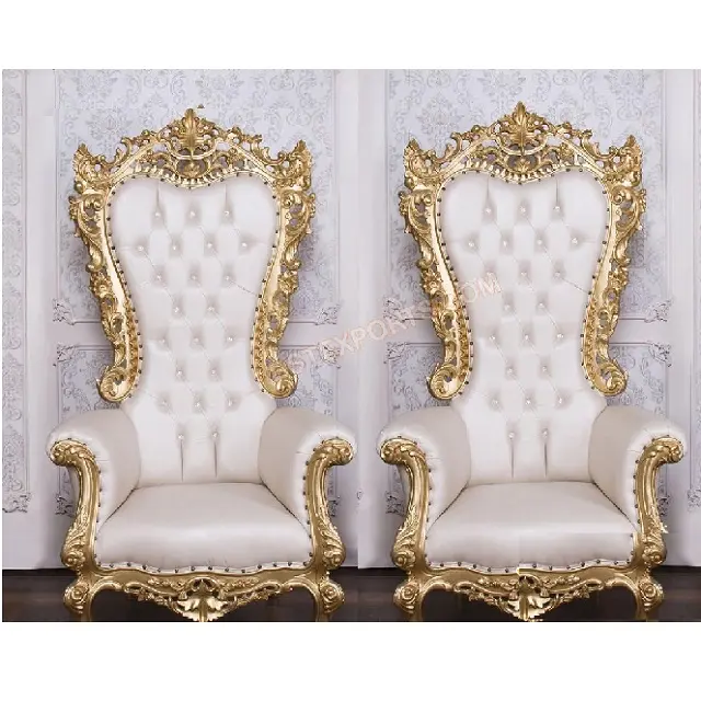 Affordable Wedding Engagement Stage Throne Chair Traditional Indian Wedding Chairs White Golden Wedding Maharaja Chairs Set UK