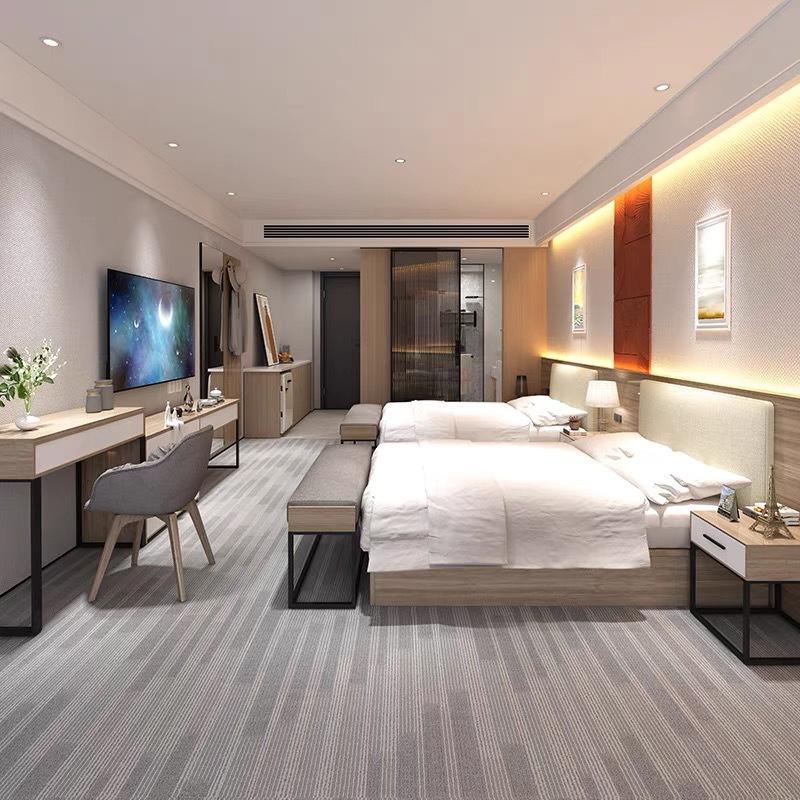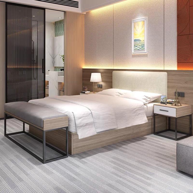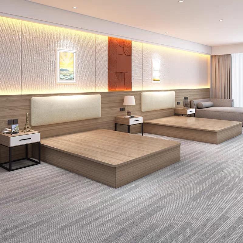 เตียงไม้ราคาไม่แพงสำหรับห้องพักโรงแรมชุดเฟอร์นิเจอร์ห้องนอนโรงแรมตัวเลือกขนาดเตียงคู่แบบกำหนดเอง