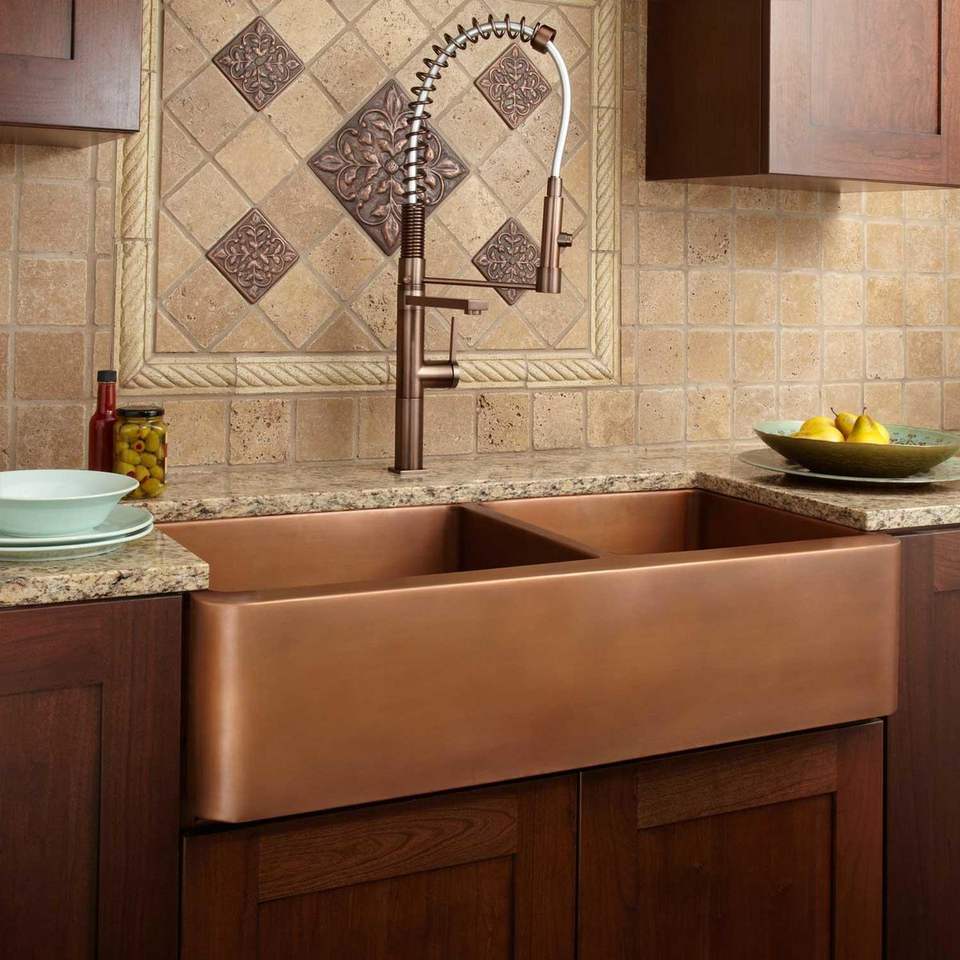 Affordable farmhouse copper kitchen sink with hammered apron front installation for rustic kitchen design renovation projects