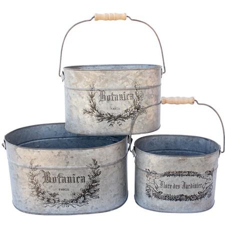 อ่างปลูกต้นไม้ชุบสังกะสีสำหรับบ้านไร่แบบชนบทสวนภาชนะโลหะสำหรับดอกไม้และต้นไม้ราคาไม่แพง