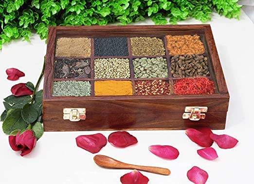 Kitchen Spice Box Wooden Masala Dabba Eco-Friendly Multi-Use Home Kitchen Gift for Mother