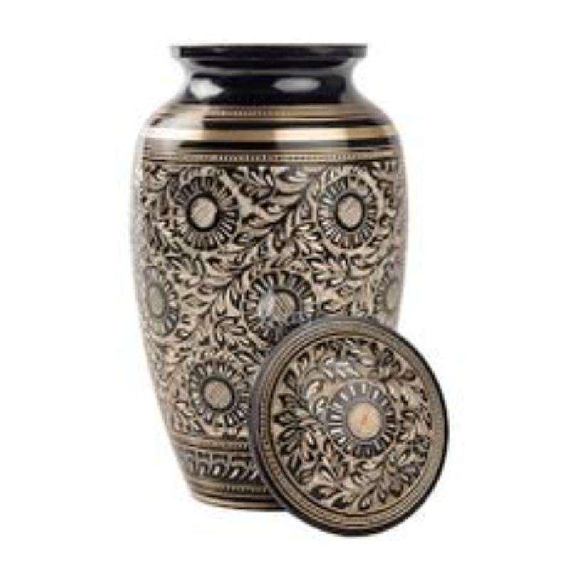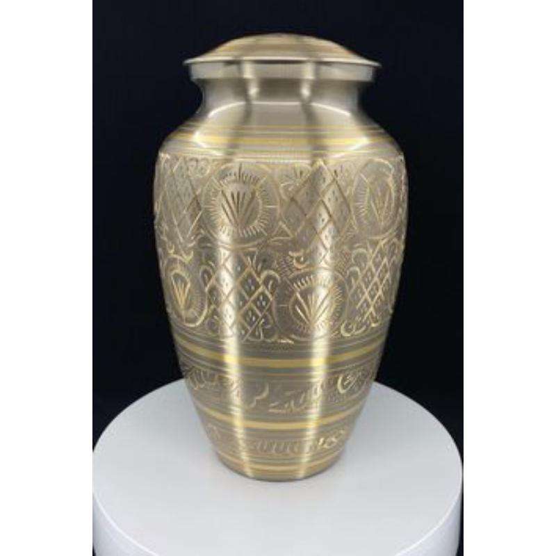 โกศใส่ศพทองเหลืองหรูหราในราคาไม่แพงพร้อมรายละเอียดละเอียดและขัดเงาเพื่อความทรงจำที่ยาวนาน
