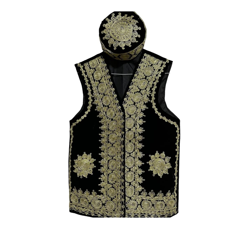 Afghan Traditional Waistcoat With Gold Embroidery Kuchi Afghan Waistcoat for Men Afghani Party & Wedding Waistcoat