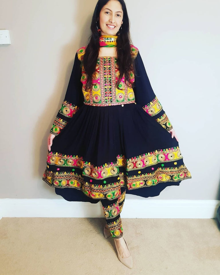 Afghani Dress Wholesale Fashion Long Dress Embroidered Patch Design High Neck Long Sleeve Flared Hem Wedding Evening Party for