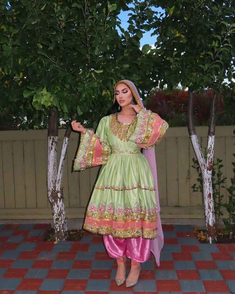 ชุดเดรสสตรีงานฝีมือสไตล์อัฟกานิสถานสมัยใหม่ ตกแต่งด้วยงานปักอย่างประณีต พร้อมระบายและเข็มขัดลายสวยงาม ผ้าคุณภาพสูง เหมาะสำหรับงานปาร์ตี้และกิจกรรมทางวัฒนธรรม AA