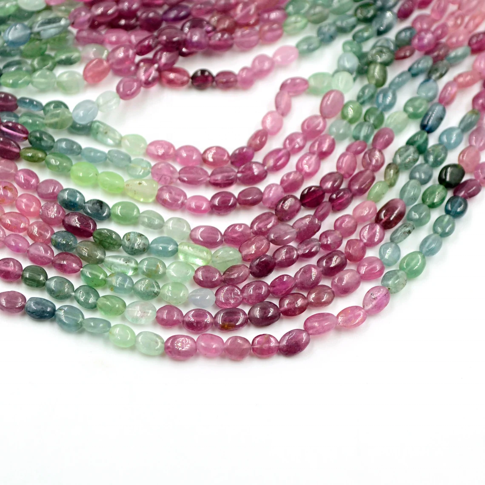 Afghani Multi Tourmaline Smooth Oval Shape Beads