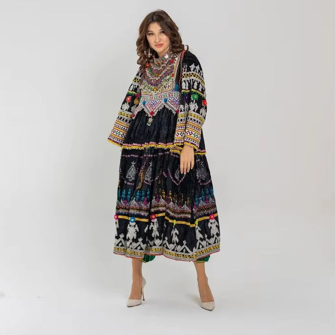 ชุดเดรสวินเทจแบบอัฟกานิสถาน พร้อมงานปักมือ ดีไซน์โบราณไม่ซ้ำใคร สวมใส่สบาย ชุดเดรสอัฟกานิสถานสำหรับผู้หญิง ชุดคูชี ขายส่งแบบ OEM
