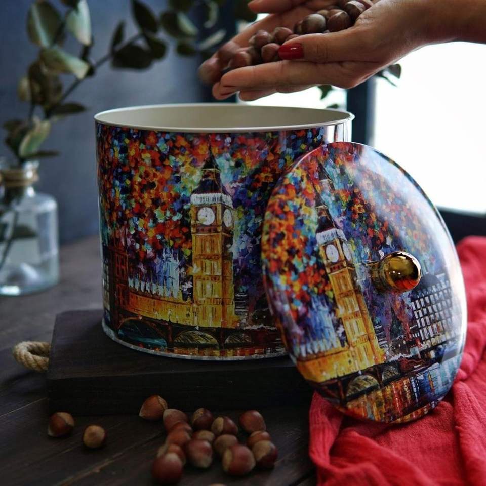 Afremov ภาชนะเก็บอาหาร3.5L ขนาดใหญ่พร้อมที่จับกระป๋องโลหะทรงกลม Ø175x155มม. สำหรับห้ามเก็บ