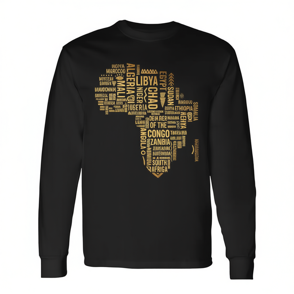 แผนที่แอฟริกา ประเทศต่างๆ ประวัติศาสตร์คนผิวดำ ความภาคภูมิใจของชาวแอฟริกันอเมริกัน เสื้อยืดแขนยาว