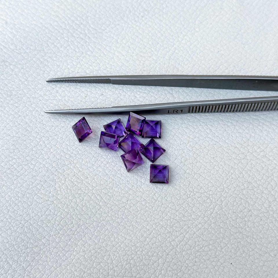 หินตัดทรงสี่เหลี่ยมอเมทิสต์จากแอฟริกาธรรมชาติ6มม. อัญมณีหลวมเกรด AAA ซื้อออนไลน์จำนวนมาก