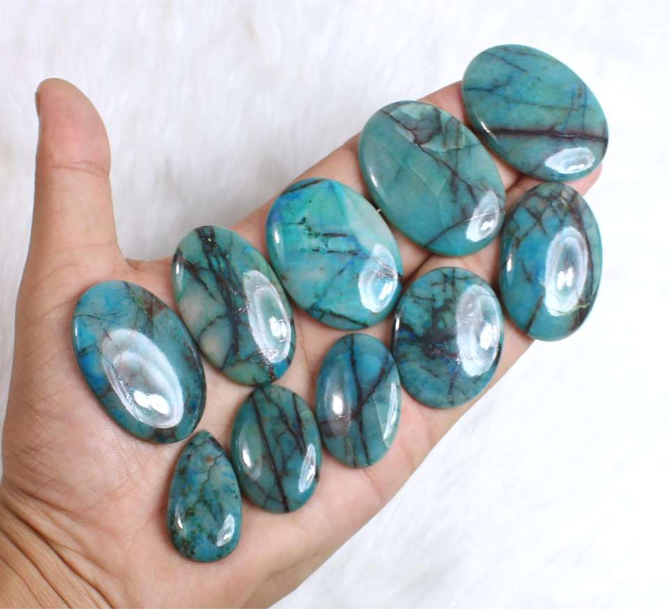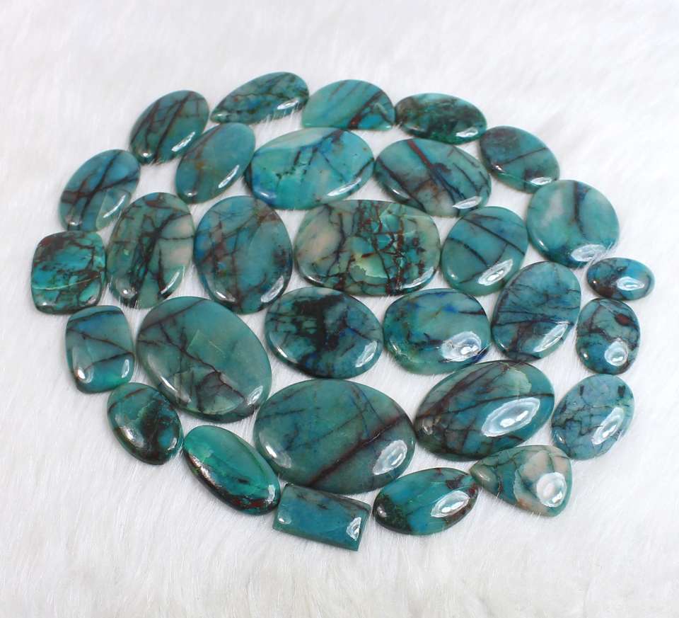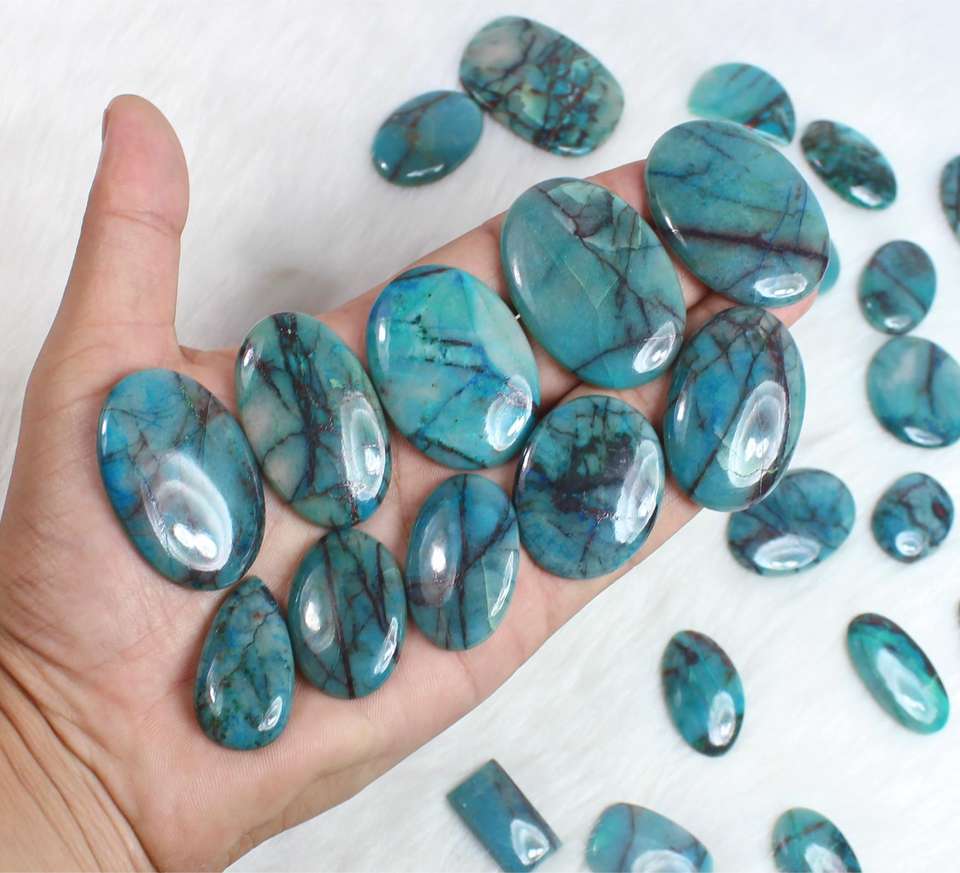 แอฟริกัน Chrysocolla Cabochons สําหรับทําเครื่องประดับแอฟริกัน Chrysocolla อัญมณีผสมรูปร่างและขนาดอัญมณีจํานวนมากอัญมณี