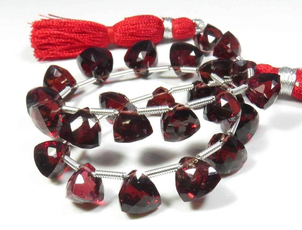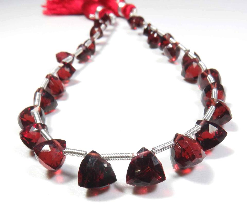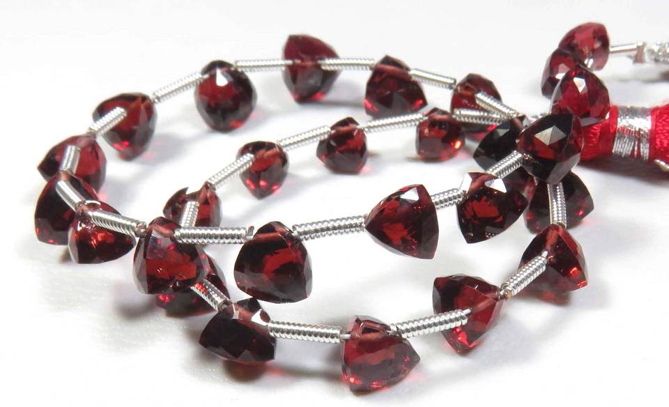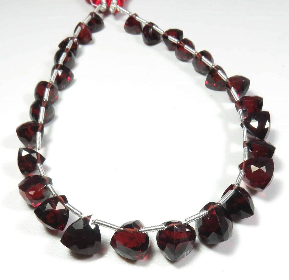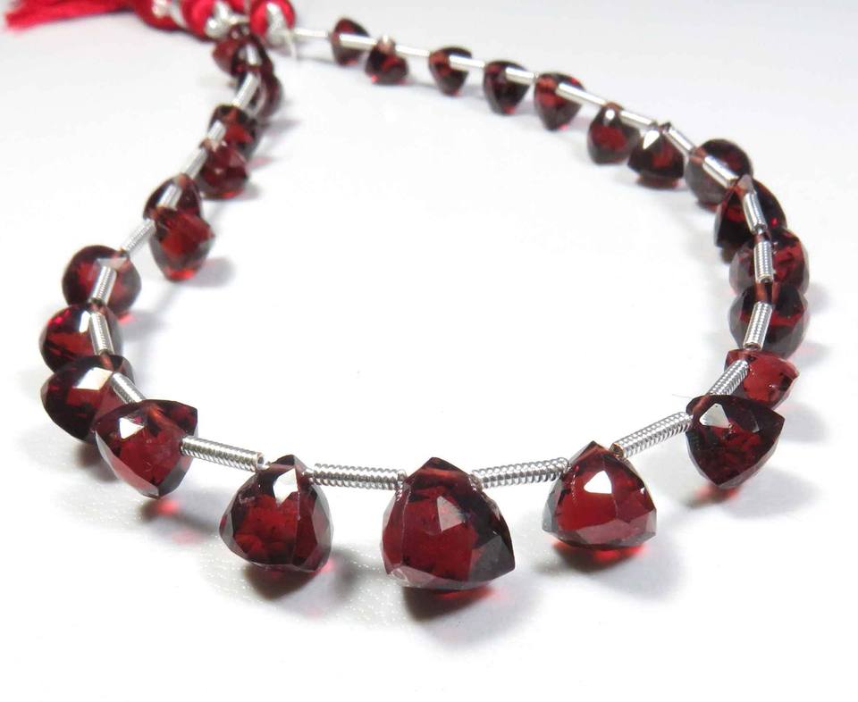 ลูกปัดโกเมนแดงธรรมชาติจากโมซัมบิก ทรงบริโอเลตเหลี่ยมเพชรพลอย ขนาด 5-7.5 มม. ความยาว 9 นิ้ว ลูกปัดพลอยโกเมนจากแอฟริกา สำหรับงาน DIY เครื่องประดับ