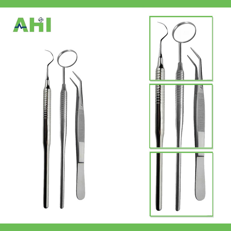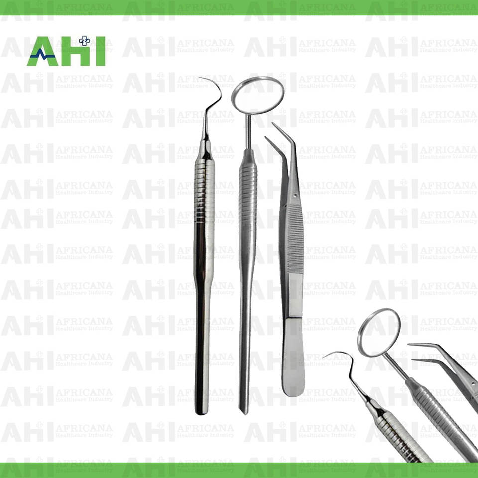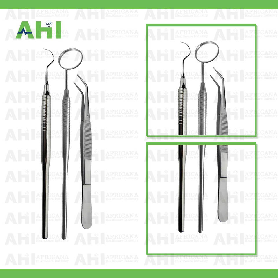 African Healthcare Industry 3pcs Manual Dental Examination Kit Stainless Steel Mouth Mirror Dental Explorer Probe Cotton