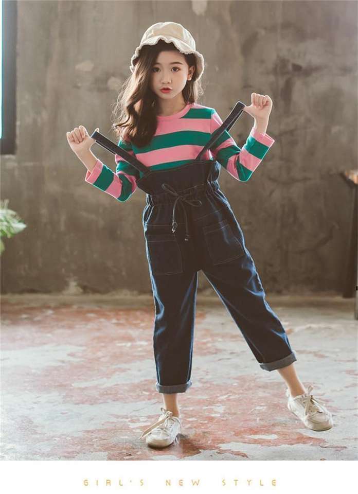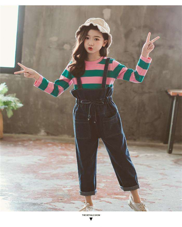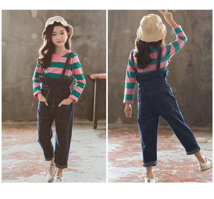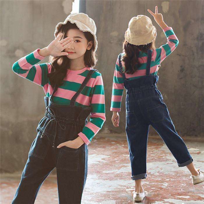 เสื้อยืดลายทางผ้าฝ้ายลายตารางใหญ่สำหรับเด็กชาวแอฟริกัน พร้อมกางเกงยีนส์แบรนด์เนมในโบลิเวีย