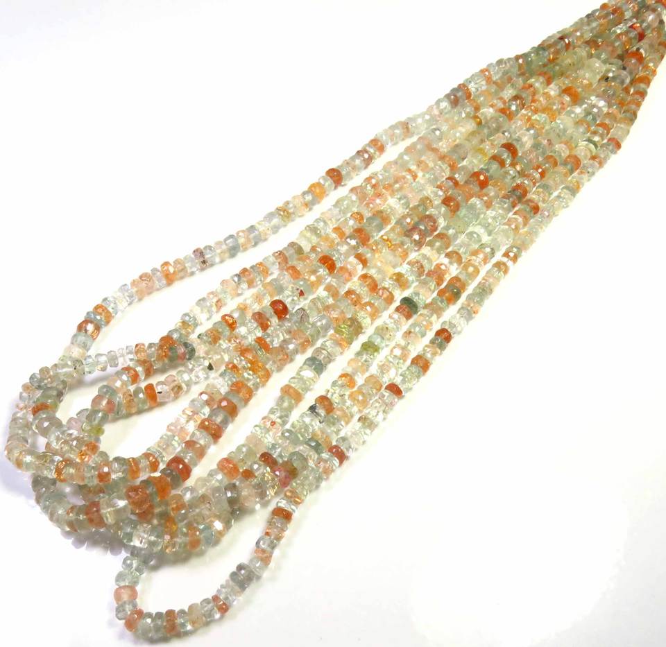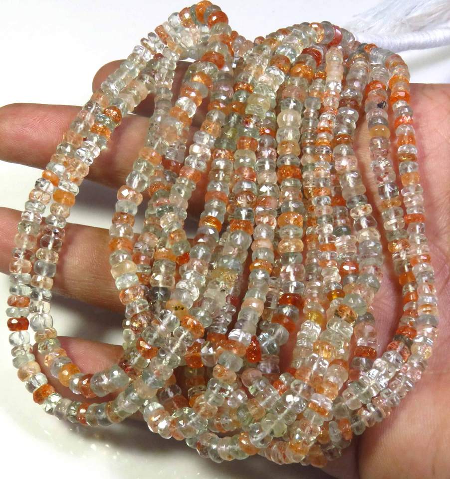 ลูกปัดรอนเดลล์ซันสโตนธรรมชาติจากแอฟริกา คุณภาพสูง สีส้ม ขนาด 3.5-4.5 มม. ทรงเหลี่ยมเจียระไน เปลี่ยนสี/เปล่งประกาย ความยาว 16 นิ้ว