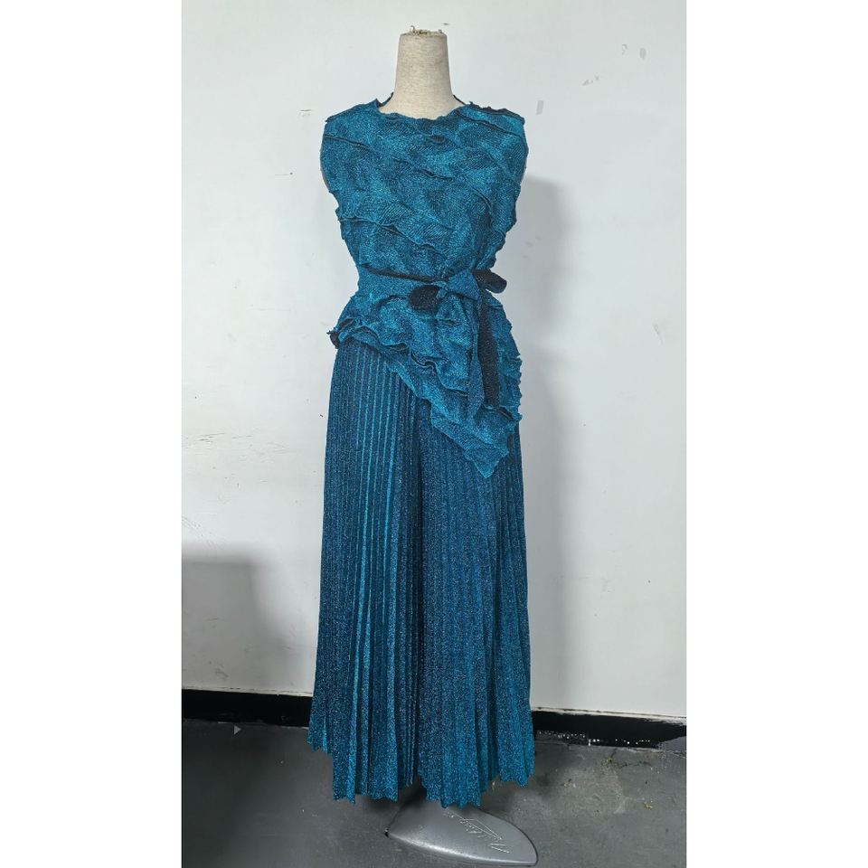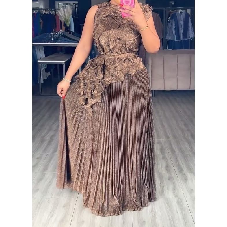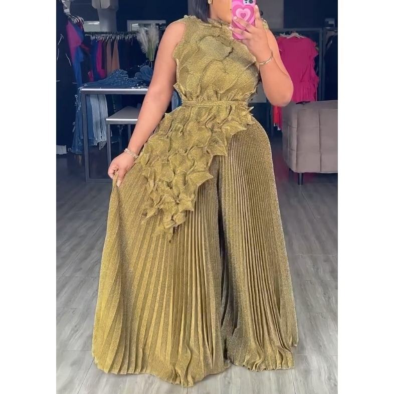 ชุดเซ็ต 2 ชิ้นแฟชั่นสำหรับผู้หญิงพลัสไซส์ชาวแอฟริกัน เสื้อแขนกุดระบายชายไม่สม่ำเสมอ กางเกงขายาวทรงหลวมสบายๆ
