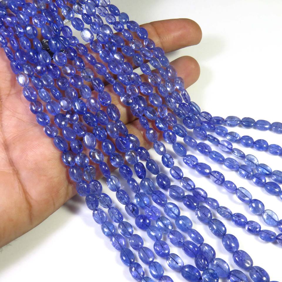 ลูกปัดขัดเงารูปไข่รูปไข่พลอยธรรมชาติ Tanzanite จากแอฟริกา5x4-9x6mm Pleochroic ขนาด8"
