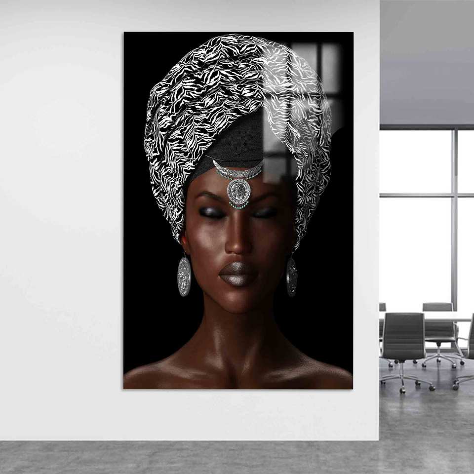 งานศิลปะกระจกนิรภัยลายผู้หญิงแอฟริกัน: ภาพพิมพ์บนผ้าใบลายชนเผ่าติดผนัง, กระจก