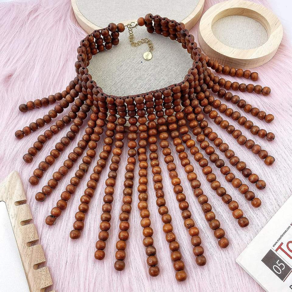 สร้อยคอเส้นใหญ่ลูกปัดอะคริลิคทำจากไม้หรืออะคริลิคเป็นเส้นคลัสเตอร์คอใหญ่สร้อยคอไม้สำหรับผู้หญิง