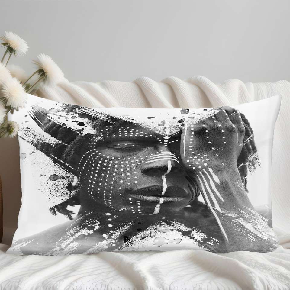 Afro American African Portrait Print Throw Pillow, Modern Boho Decor,8"x8" - 20x20 cm