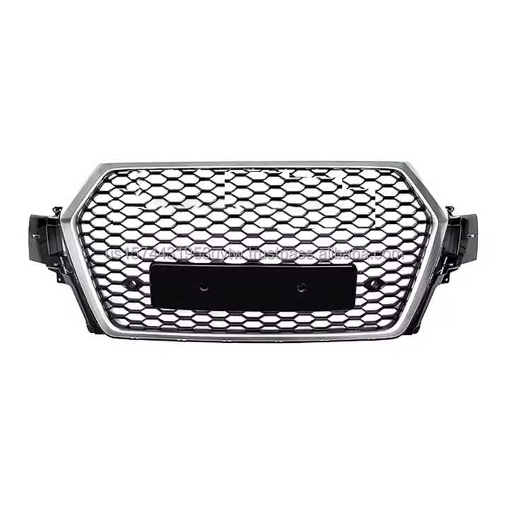 กระจังหน้ากันชนสีเงิน ABS ใหม่สำหรับ Q7 Audi 4M 2016-2019 Facelift RSQ7รังผึ้งสีดำ