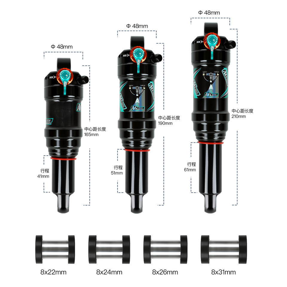 โช้คหลังจักรยานเสือภูเขา Ag Idds รุ่น 165 190 210 ปรับระดับการลดแรงกระแทกได้ โช้คแบบเต็มระบบ อลูมิเนียมอัลลอย STG569