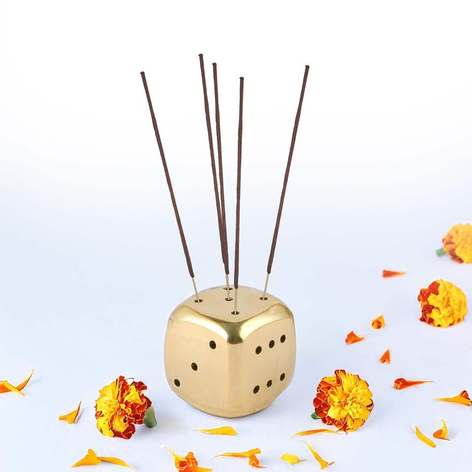 ที่วางธูปแบบลูกเต๋าพร้อมที่ดักขี้เถ้า งานแฮนด์เมดสำหรับตกแต่งบ้าน สำนักงาน และพิธีกรรม