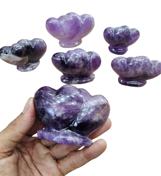หินอเมทิสต์พลอยรูปหัวใจคู่ทำมือตกแต่งบ้านหินกึ่งมีค่าซื้อออนไลน์จากคริสตัลอะไมยรา