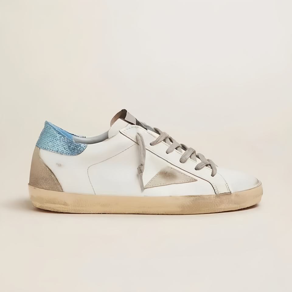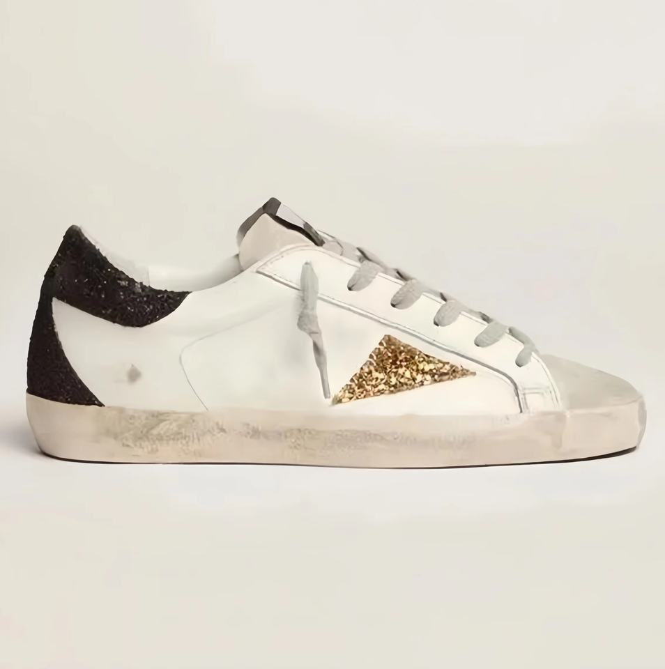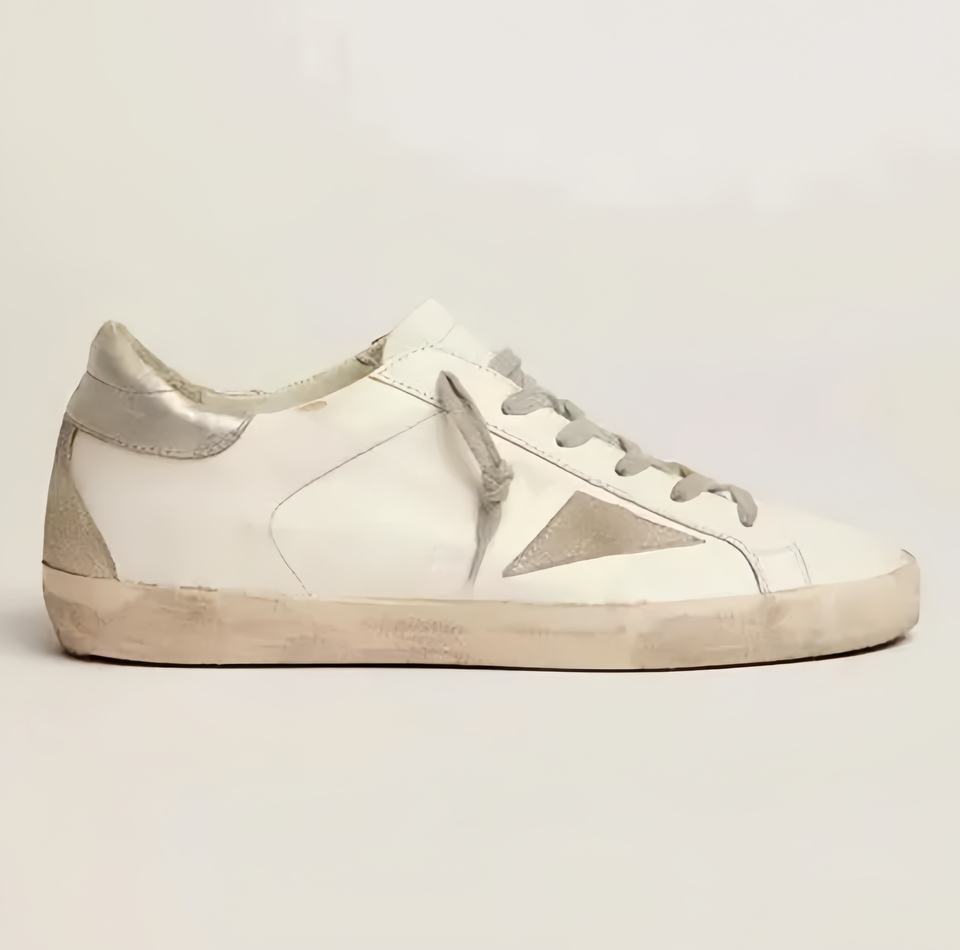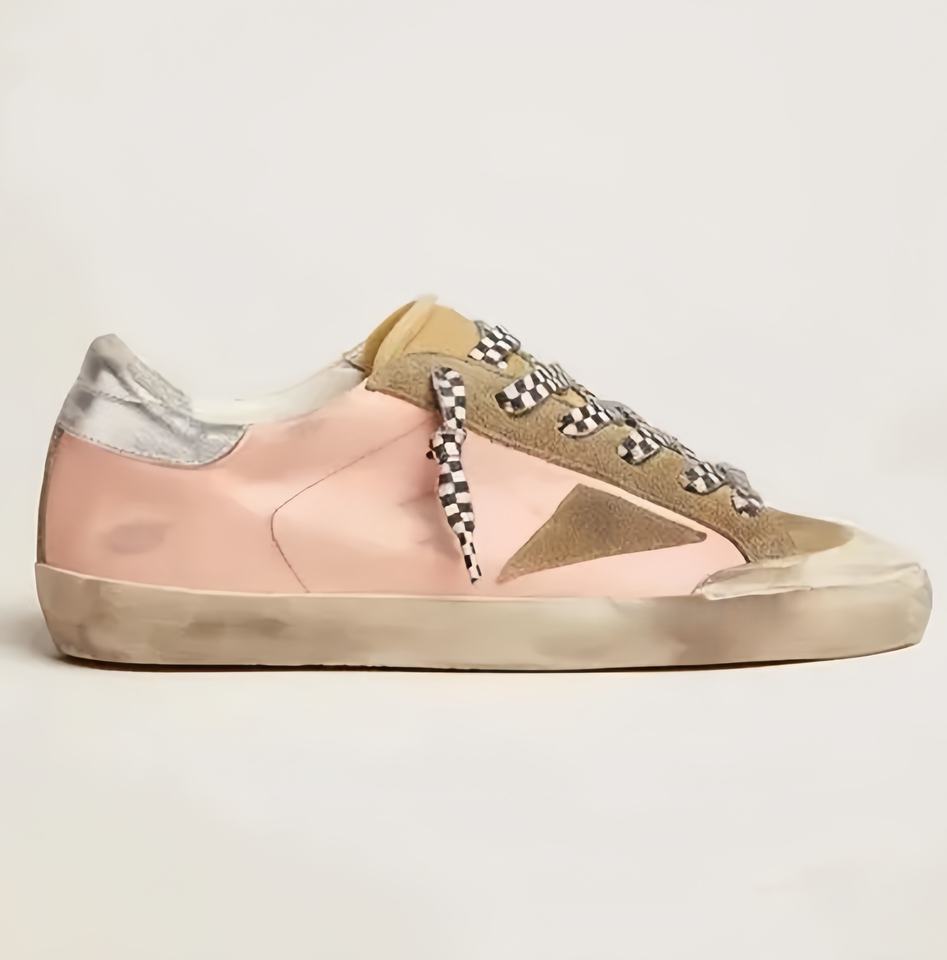 รองเท้าผ้าใบส้นแบนขนห่านสีทองสำหรับทั้งชายและหญิงรองเท้าลำลองซุปเปอร์สตาร์แฟชั่นดีไซน์ย้อนยุค