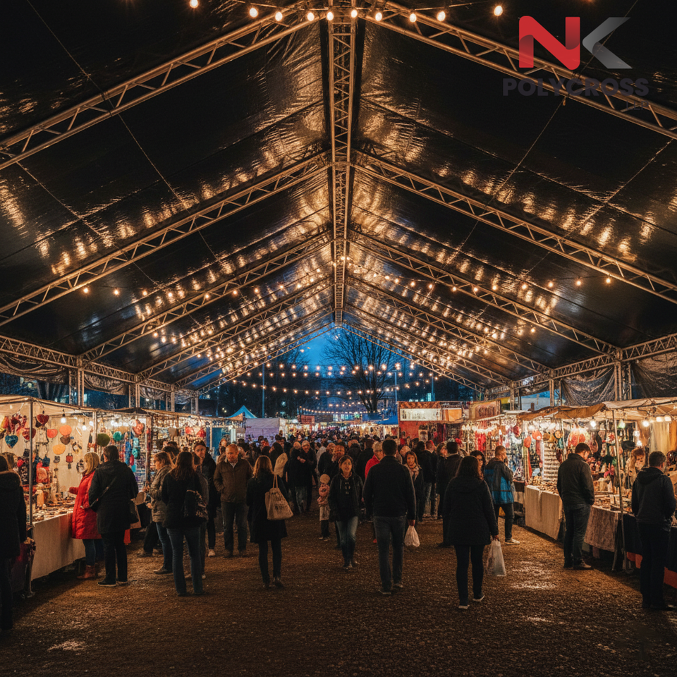 ผ้าใบคลุมกันแดดเกรดเกษตรกรรมสำหรับงานเทศกาล ผ้าใบคลุมเต็นท์งานเทศกาล เกรดอุตสาหกรรมเคลือบ PVC