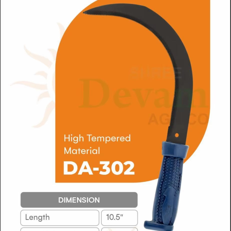 เคียวเกษตร ด้ามไม้พลาสติก ใบมีด 13 นิ้ว สีแดง ผิวขัดเงา ใบหยัก รุ่น DA-02 ODM ผลิตตามสั่ง น้ำหนัก 150 กรัม