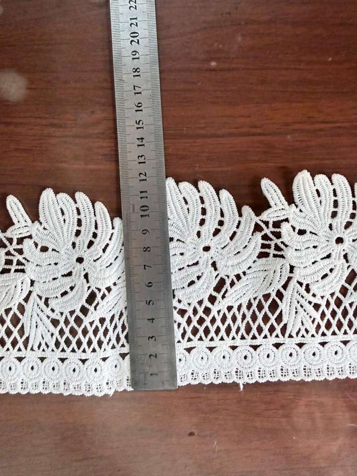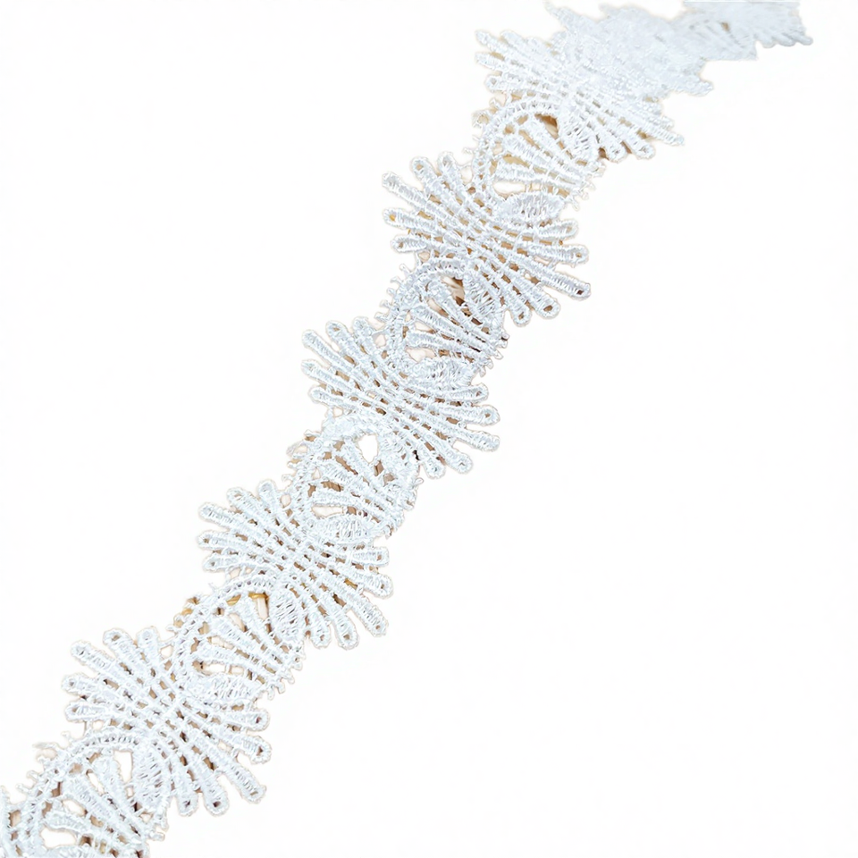 ผ้าลูกไม้คุณภาพสูง 100% โพลีเอสเตอร์ ปักลายบาร์โค้ด ละลายน้ำได้ ความกว้าง 3.2 ซม. สำหรับเสื้อผ้า สายรัด รองเท้า กระเป๋า และของตกแต่งบ้าน