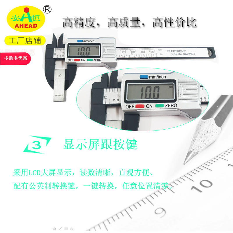 คาลิปเปอร์ดิจิตอลพลาสติก ยี่ห้อ Ahead 0-100 มม. เครื่องมือวัดความแม่นยำสูง