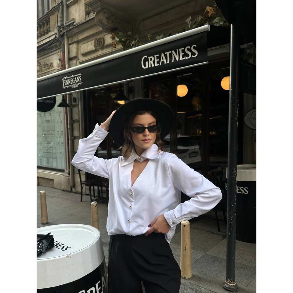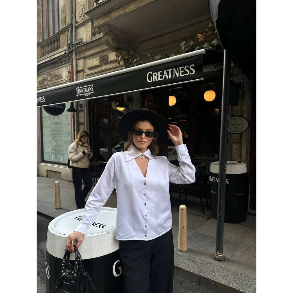 เสื้อเชิ้ตคอปกอาเฮสเตสีขาว S เสื้อผู้หญิงแขนยาวทรงคลาสสิค