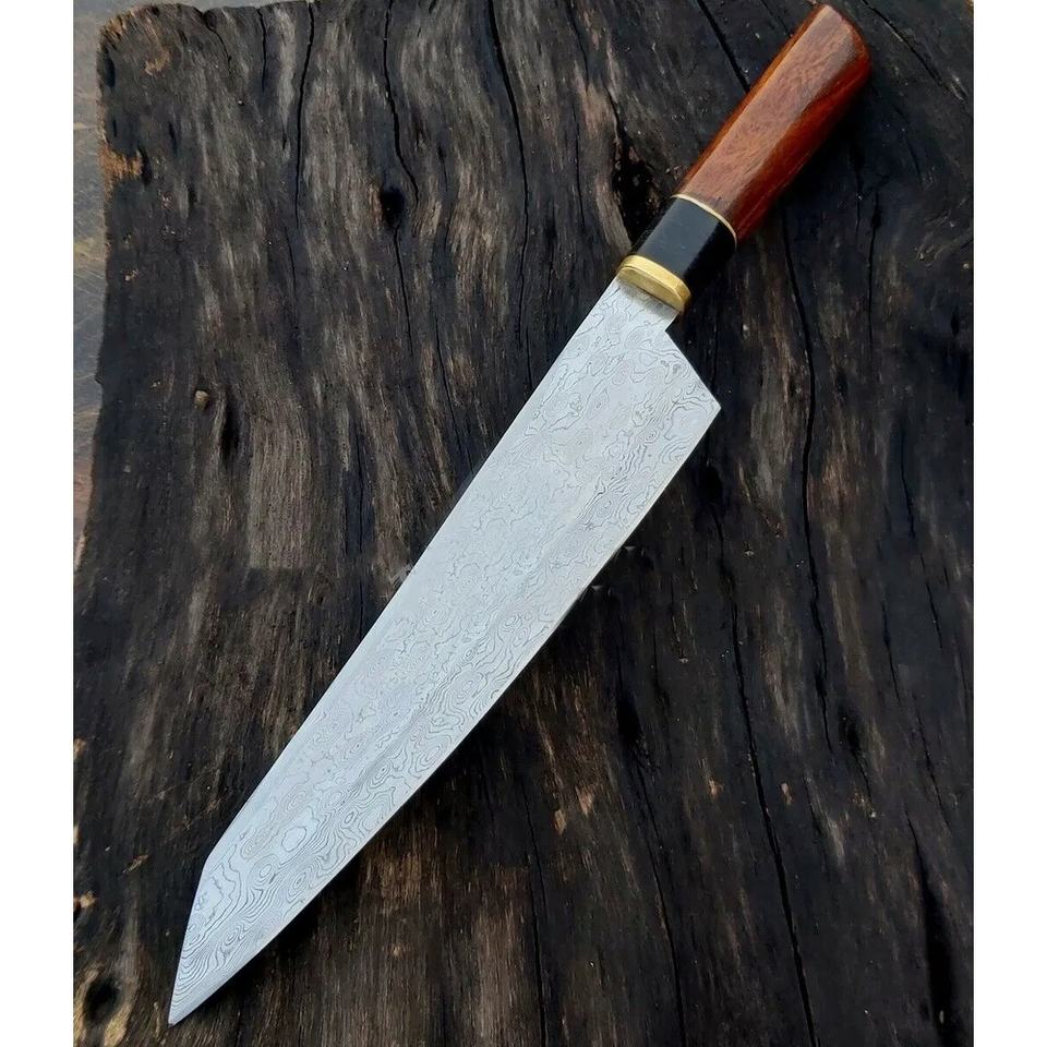 มีดเชฟเหล็กดามัสกัสขนาด 13 นิ้ว ทำมือโดยอาห์หมัด พร้อมปลอกหนัง ด้ามจับสวยงาม ปรับแต่งได้ตามต้องการ