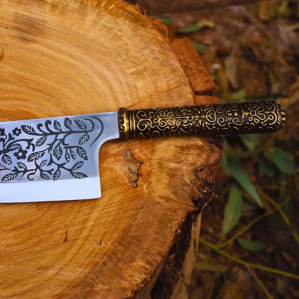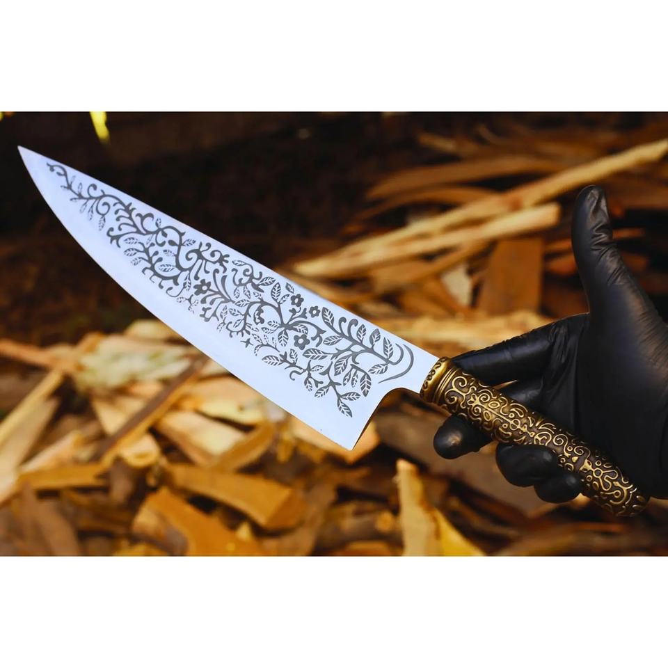 มีดเชฟเหล็กกล้าไร้สนิมขนาด 13 นิ้ว ยี่ห้ออาห์หมัด แฟบริค ผลิตด้วยมือ พร้อมปลอกหนัง ด้ามจับสวยงาม ปรับแต่งได้ตามต้องการ