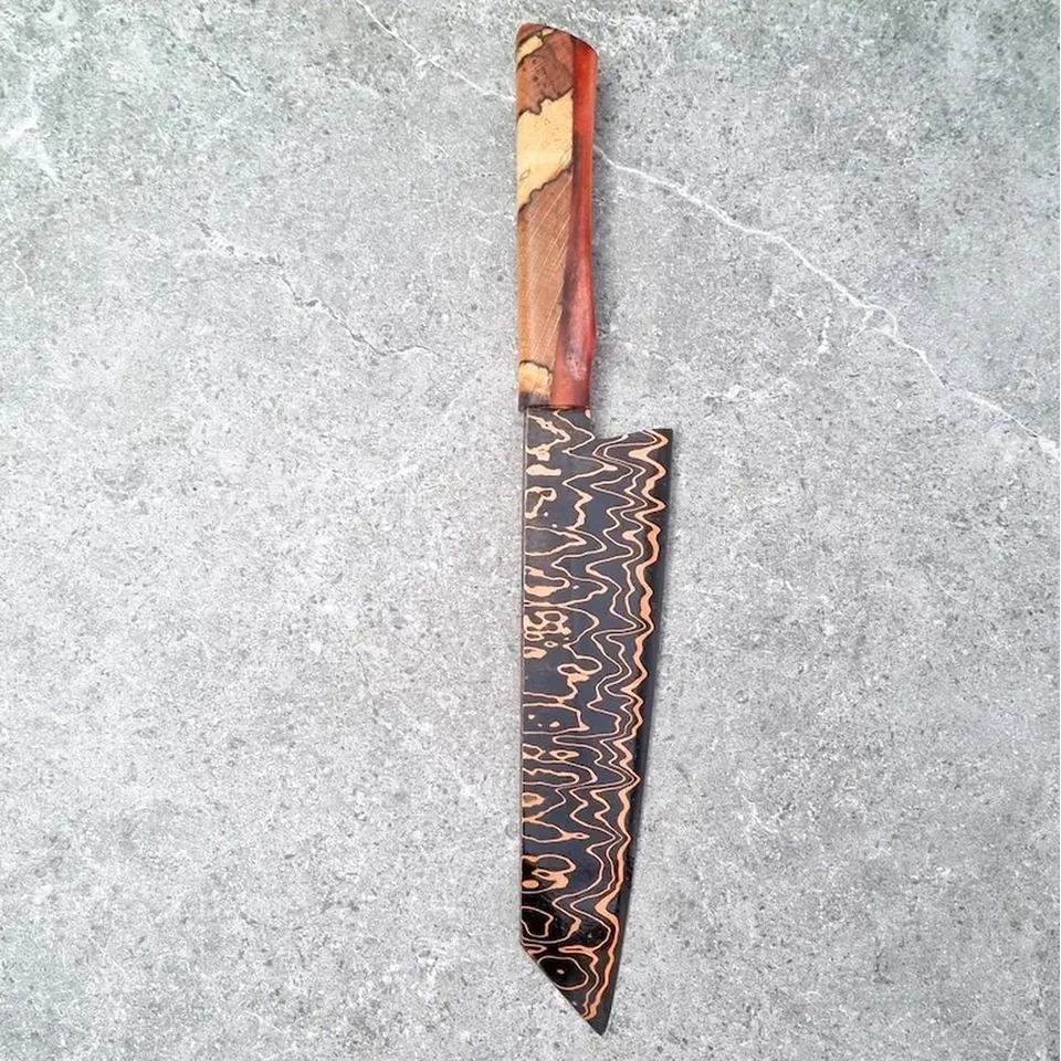 มีดเชฟเหล็กกล้าไร้สนิมขนาด 13 นิ้ว ยี่ห้ออาห์หมัด แฟบริค ผลิตด้วยมือ พร้อมปลอกหนัง ด้ามจับสวยงาม ปรับแต่งได้ตามต้องการ