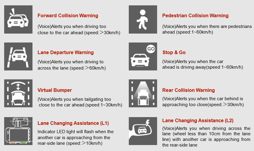 การตรวจจับการเคลื่อนไหว, แอปควบคุม, Adas, Build-In WiFi, AIDASฟังก์ชัน