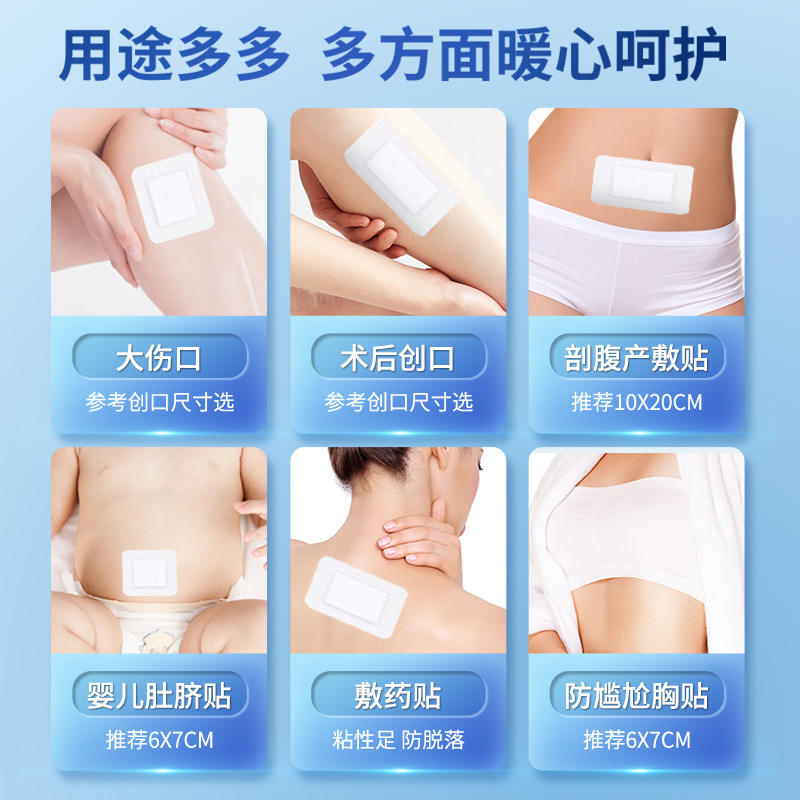 ผ้าปิดแผลปลอดเชื้อ AiHuJia ขนาด 70 มม. x 60 มม. ชนิด A บรรจุภัณฑ์แยกชิ้น อุปกรณ์การแพทย์แบบใช้ครั้งเดียว