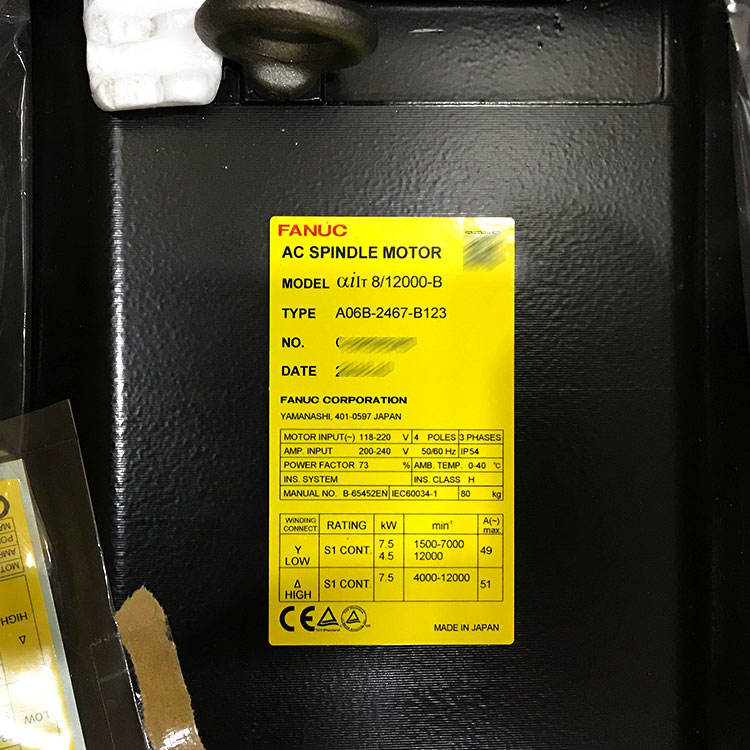 ชื่อผลิตภัณฑ์:A06B-2467-B123 aiit 8/12000-B Fanuc มอเตอร์สปินเดิลมอเตอร์ AC ของแท้ใหม่