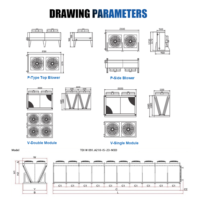 Aidear ท่อระบายความร้อนหม้อน้ำระบายความร้อนแบบครีบสำหรับอุตสาหกรรมเครื่องทำน้ำเย็นแบบแห้งพร้อมพัดลม