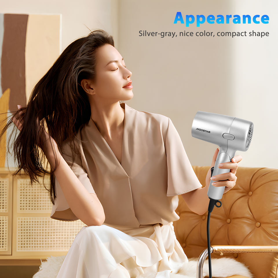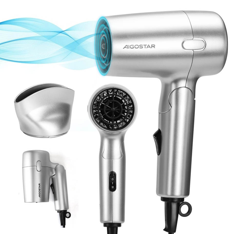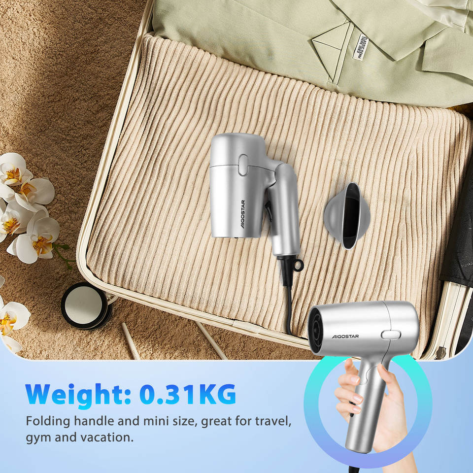 Aigostar เครื่องเป่าผมไฟฟ้าขนาดเล็ก-ด้ามจับพับได้พกพาได้ขนาดกะทัดรัดป้องกันความปลอดภัย2สปีดการตั้งค่าอุณหภูมิการใช้งานในโรงแรม DC