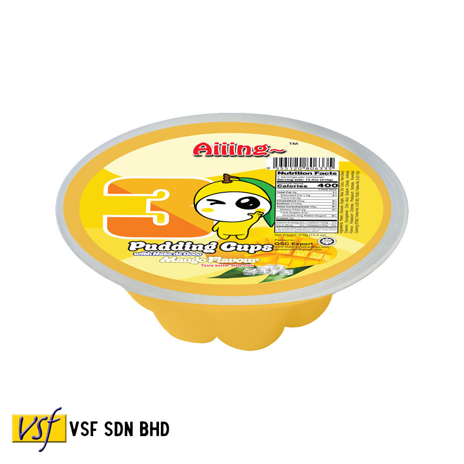 Aiiing ชามพุดดิ้งพร้อมนาตาเดอโคโค่เคงโกพุดดิ้งขนาดใหญ่410กรัม x 12ชามมะม่วงรสพุดดิ้งผลไม้มาลาเซียขนม