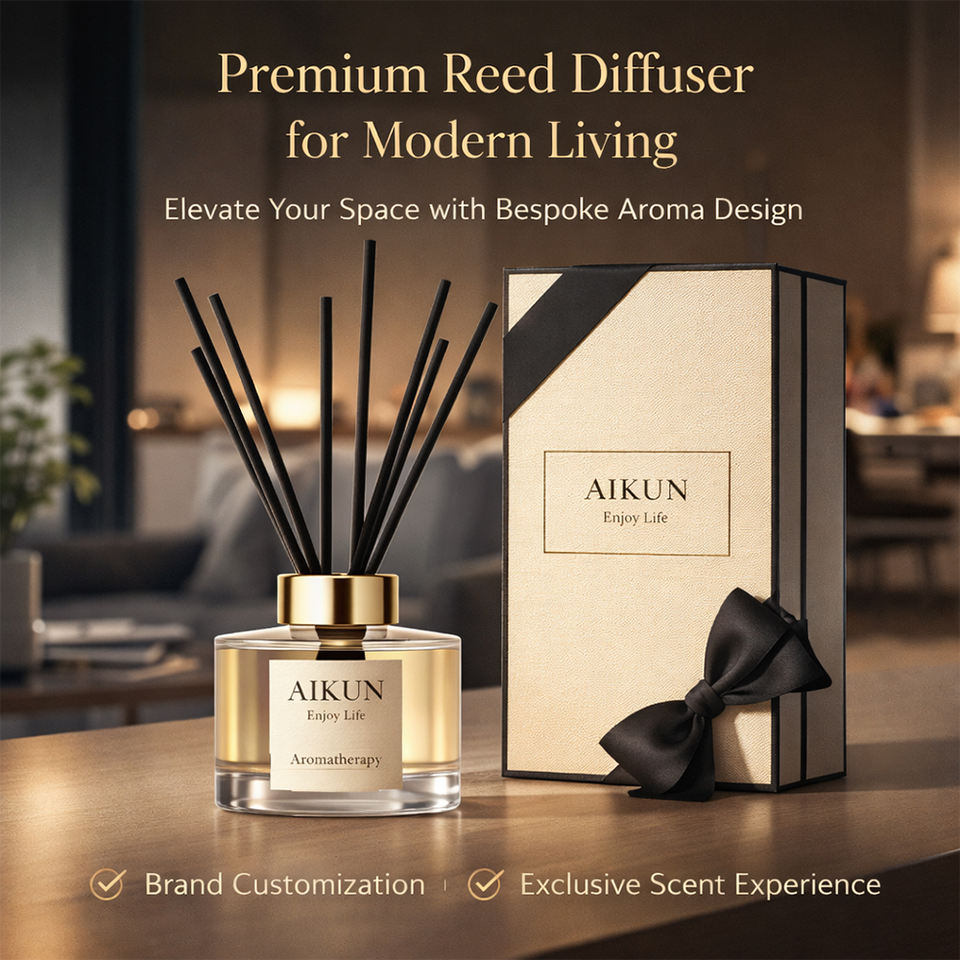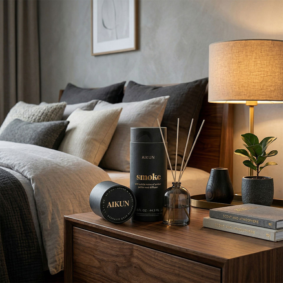 ชุดของขวัญก้านไม้หอมปรับแต่งกลิ่นควันบุหรี่ได้ ขนาด 100 มล. ขวดสีดำด้าน สูตร IP16 บรรจุภัณฑ์พรีเมียม สำหรับห้องนอนสไตล์โมเดิร์น ยี่ห้อ Aikun