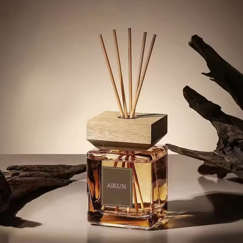 โรงงานอ้ายคุนขายตรงของตกแต่งบ้าน ขวดสี่เหลี่ยมขนาดใหญ่ 200 มล. น้ำหอมปรับอากาศแบบไม่ใช้ไฟ สำหรับโรงแรม ตกแต่งภายในบ้าน ก้านไม้หอมธรรมชาติ