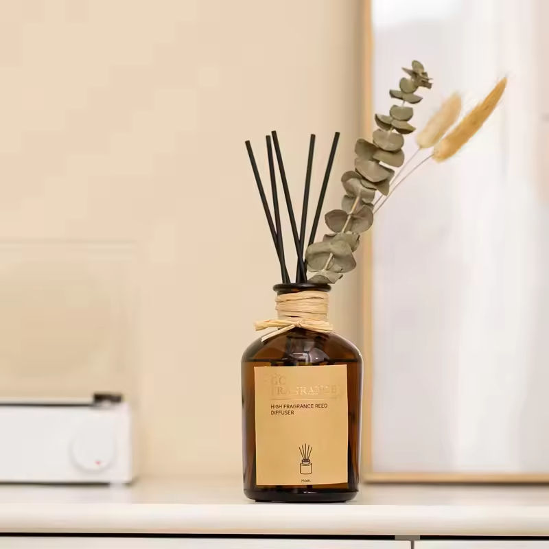 Aikun High Quality Wholesale Custom Luxury Home Fragrance Long Lasting Aroma Air Freshener Amber Glass Bottle Reed Diffuser