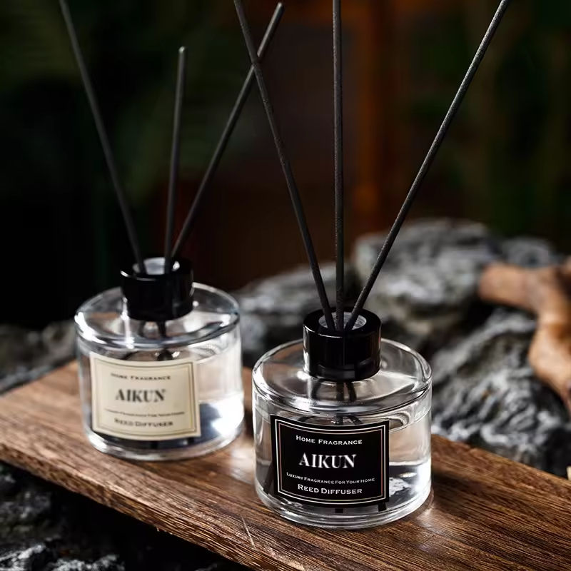 โรงงานผลิตน้ำหอมปรับอากาศแบบกระจายกลิ่นในขวดแก้ว Aikun รับผลิตแบบ OEM ODM ชุดน้ำหอมพรีเมียมสำหรับบ้าน ขายส่งน้ำหอมอโรมาเธอราพี