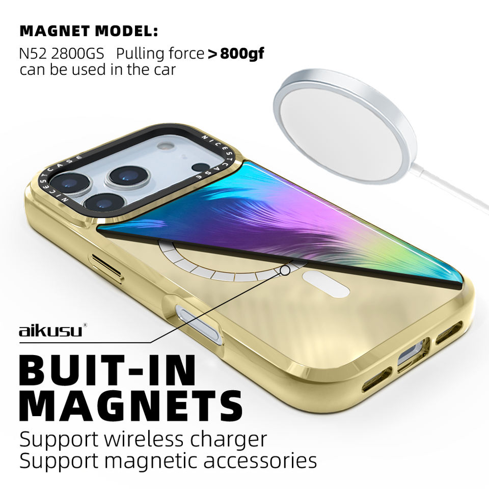 เคสโทรศัพท์ไอโฟน 17 16 15 14 13 Air Plus Pro Max รุ่น Aikusu สีสันสดใส ประกายวิบวับ แบบแม่เหล็ก พร้อมเคลือบผิวแบบโฮโลแกรม